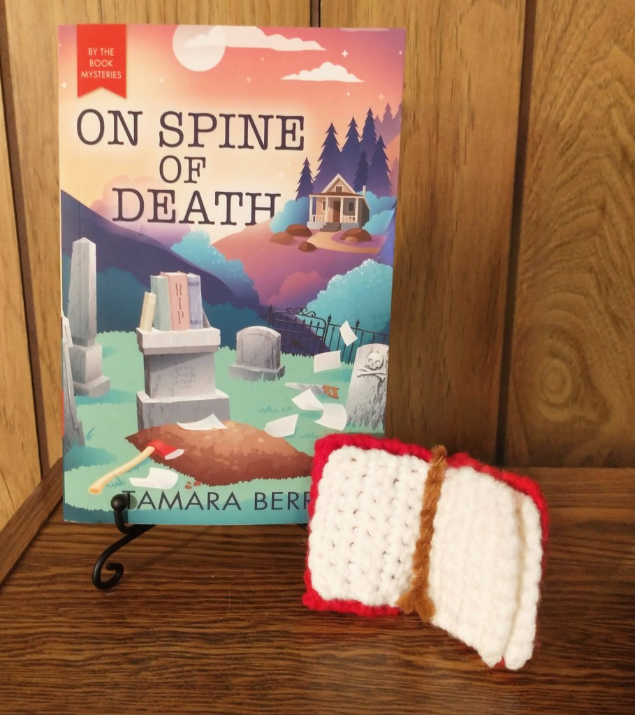 Since the majority of the plot revolves around a book, I crocheted one for my review!